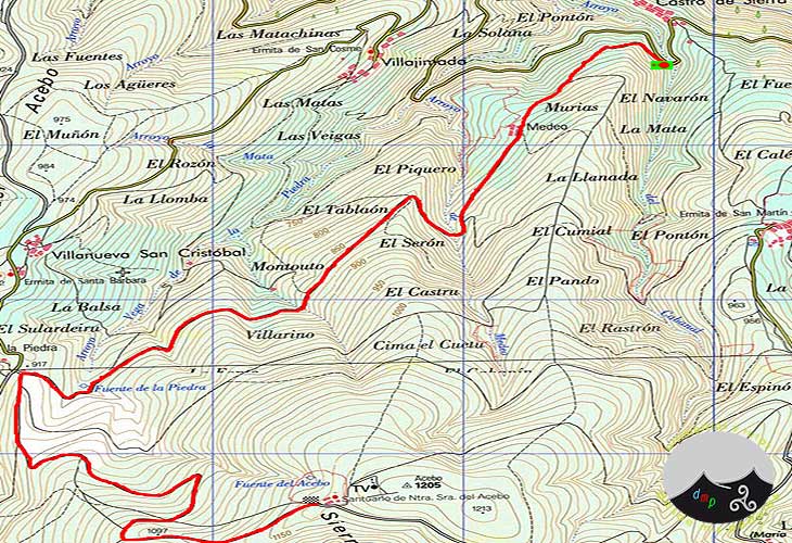Localización: Para subir al Santuario de Nuestra Señora del Acebo, por esta vertiente de El Medeo, tenemos que situarnos en la localidad de Castro de la Sierra, en la carretera CN2. Para llegar hasta allí lo podemos hacer por el alto de Biescas, o bien por la carretera de Porley.