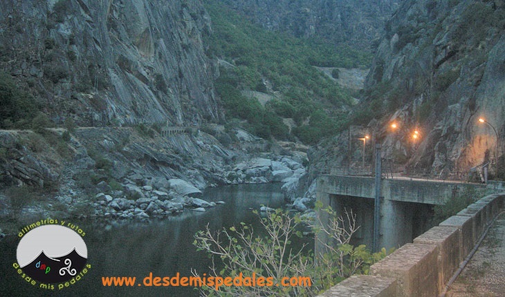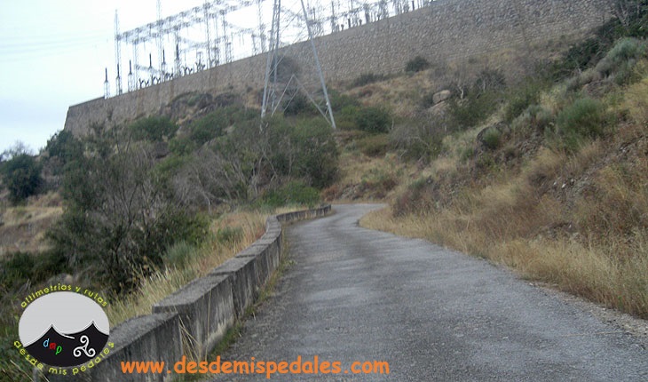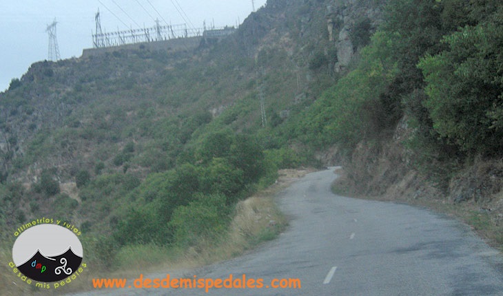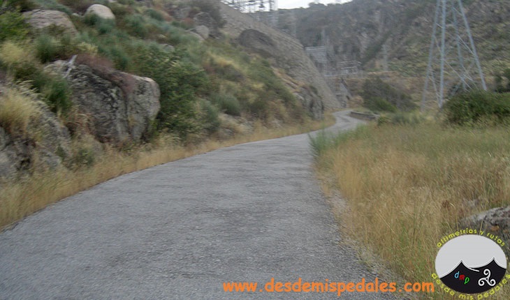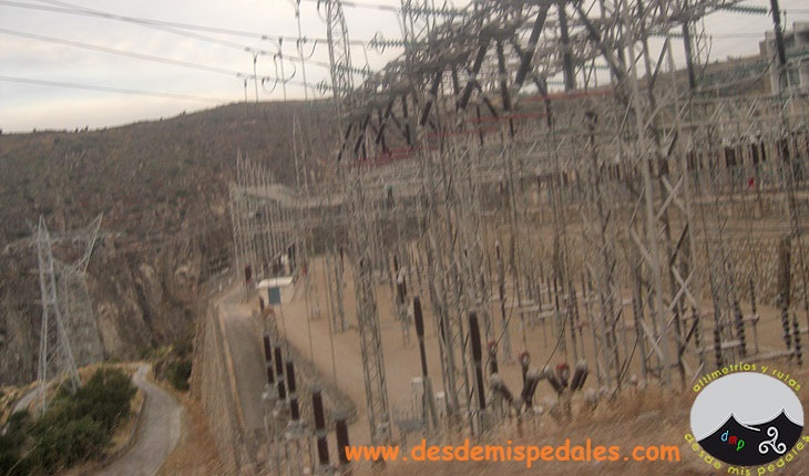 Poco a poco nos iremos acercando al enjambre de cables de alta tensión que hay casi arriba del todo. No ( o sí, si estoy bien protegido) me gustaría estar por aquí en una noche de tormenta... Tras una ultima herradura, llegaremos al edificio de control de la central. Desde allí visita inexcusable a los miradores hacia la presa. Eso si, recomiendo quitarse las zapatillas de ciclismo y bajar descalzo, ya que los escalones y el vértigo que producen los miradores no son muy aconsejables con los tacos de las zapatillas. Las imágenes que los miradores nos ofrecen bien merecen el esfuerzo de haber subido hasta aquí.