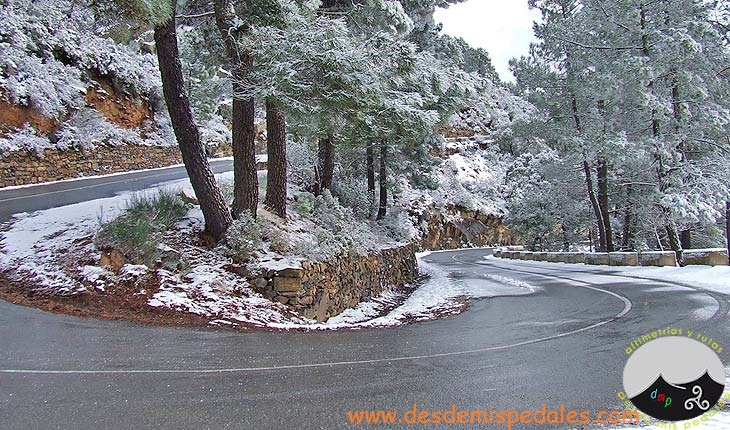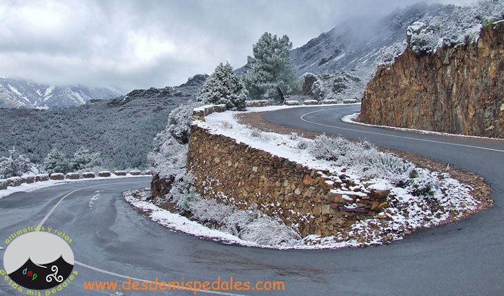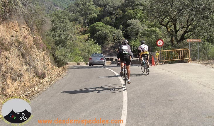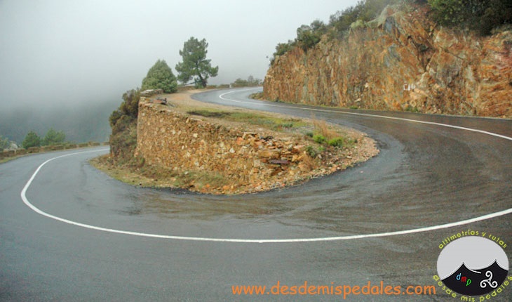 Decía antes que el puerto, si bien no es espectacular en cuanto a números, si de su dureza hablamos, tiene su dificultad en la ascensión. Nos encontraremos, como primera dificultad, que el comienzo del puerto está tan encajonado que la sensación allí abajo es siempre rara, de calor, de asfixia, de falta de aire. A partir del santuario la pendiente siempre va a ser parecida, entre el seis y el siete por ciento, pero esos primeros kilómetros buscando la salida del valle, antes de llegar a las herraduras hacen que llegues a ellas casi vacío de fuerzas, buscando ese respiro, que parece que ese balcón, que comentábamos antes, en forma de vistas al valle, nos va a dar. Pero nada mas lejos de la realidad. Ese ansia por concluir la subida, ese deambular constante por las herraduras, hace que no veas nunca el final de la subida, y que cuando lo tienes ahí mismo, el puerto te obsequia con el kilómetro mas duro de toda la subida para rematar la faena a lo grande...