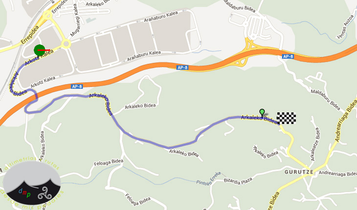 La subida a Arkale no llega a tres kilómetros. Justo en el polígono de Lanbarren comenzamos la subida. Es una subida constante en todo momento en cuanto a su pendiente. El primer kilómetro tiene un tramo que se acerca al nueve por ciento al dejar atrás el polígono y pasar bajo la autopista y adentrarnos en la zona boscosa. El segundo y tercer kilómetro siguen las mismas directrices que el anterior, siempre en torno al seis por ciento, para llegar a una zona un poco mas dura poco antes de coronar, ya cerca de la localidad de Gurutze.