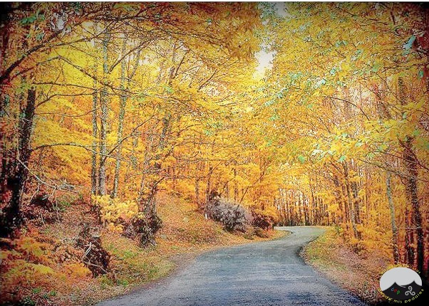 Continuamos nuestra ruta y llegamos a la localidad de Villamiel, de donde toma el nombre el puerto. A partir de Villamiel, con una pendiente mas suave, la carretera empeora sensiblemente, conviertiendose en mas botosa. Ganaremos, sin embargo, en vistosidad, ya que nos adentramos en la zona boscosa. Los castaños nos acompañan en este último tramo, un bosque muy vistoso. La abundante lluvia que cae en la zona hace que el verdor primaveral sea especial, junto con musgos y líquenes. Y qué decir del otoño..., todo un deleite.