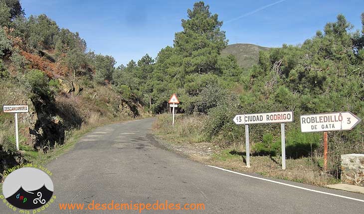El puerto lo iniciamos en la localidad de Descagarmaría, a la altura del río Arrago. Van a ser doce los kilómetros que tendremos que afrontar antes de llegar al límite de provincia con Salamanca y concluir el puerto, aunque un par de ellos son de suave descenso.