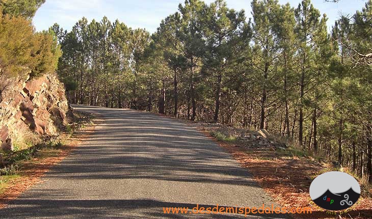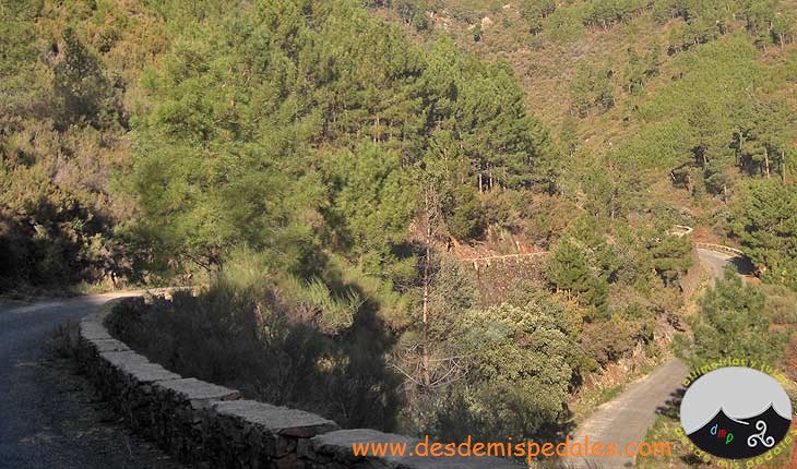En medio de un frondoso pinar vamos a ir ganando altura con porcentajes de dificultad bastante suaves, lo que nos va a permitir disfrutar, y mucho, de las excelentes vistas que ese puerto nos ofrece hacia el valle del Arrago, y hacia el precioso pueblo de Robledillo de Gata.
