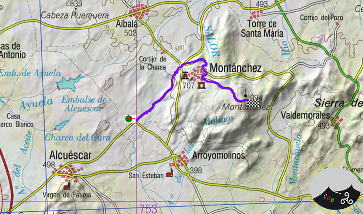 Localización: Al sur de Cáceres capital. La carretera EX-382 parte de la N-630. Comenzaremos nuestra subida a la altura del cruce en dicha carretera, con las carretereras que llevan a Arroyomolinos, por la derecha, y a Albalá, a la izquierda. Cuando llevamos algo mas de dos kilómetros de ascensión debemos tomar otro cruce, en una rotonda, hacia la localidad de Montanchez, por la EX-281.