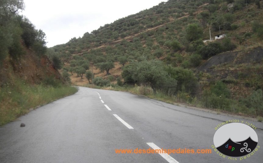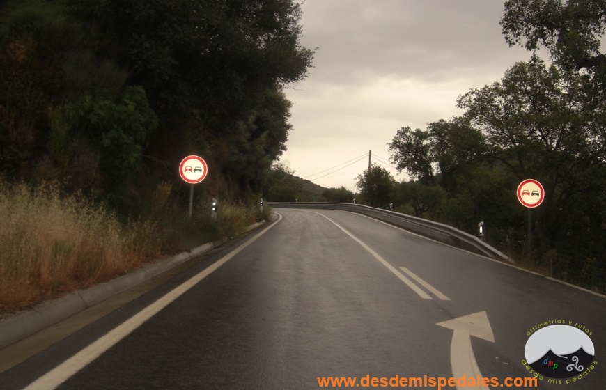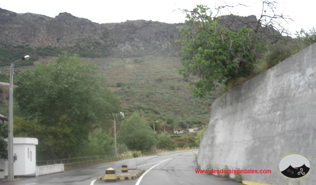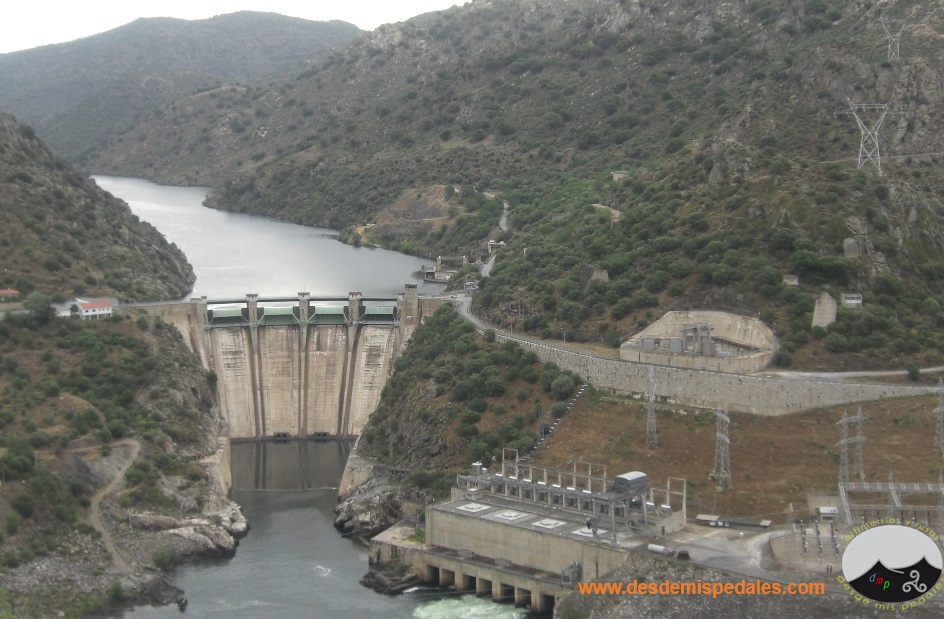 Situados ya en el embalse de Saucelle, barragem, que llaman por aquí a los embalses, nada mas cruzar la frontera comienza el puerto. Y es el comienzo del mismo la zona mas dura de toda la subida. Desde aquí hasta llegar a la N221 vamos a tener un kilómetro y ochocientos metros con una pendiente media superior al ocho por ciento y con alguna rampa que alcanzará hasta el 13% de pendiente.