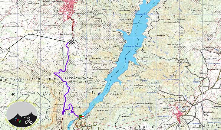 Localización: La subida a Freixo de Espada á Cinta se inicia justo sobre el río Duero, Douro a partir de ahora. Estamos en Las Arribes del Duero en la frontera natural que es el río Duero entre España y Portugal, entrando en el Parque Natural Douro Internacional. Iniciamos la ascensión en el embalse de Saucelle.