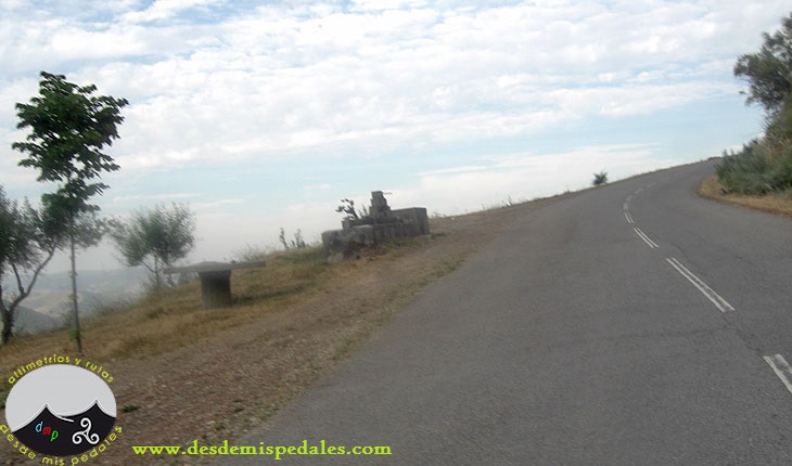 Fuentes: Justo al pasar el kilómetro tres de subida nos encontramos, a mano izquierda una fuente, junto a una pequeña área de descanso, que nos servirá para llenar nuestros bidones y disfrutar un momento de las espectaculares vistas sobre el Douro.